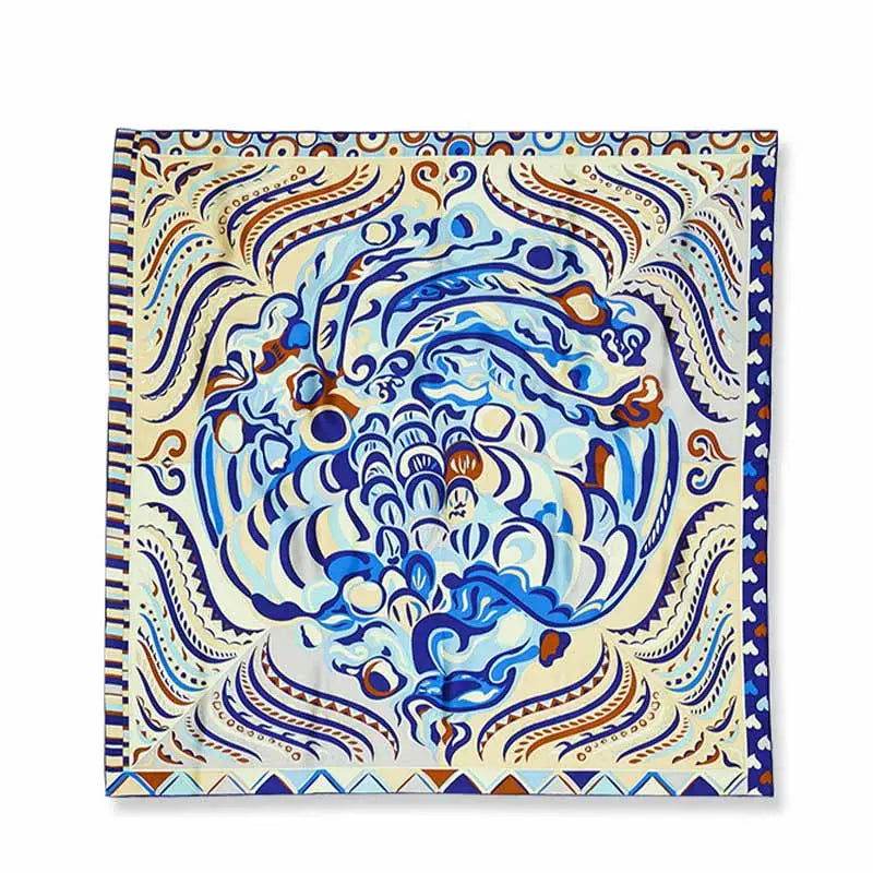 Indulge in timeless elegance with our Jade Phoenix Pattern Silk Scarf, meticulously crafted to echo the intricate beauty of traditional jade artistry. Inspired by the square box’s design, the scarf showcases a delicate palette of pale green-white with subtle yellow hues, reminiscent of natural jade veining. Its design features an arched lid adorned with finely carved double phoenix and cloud motifs, embodying cultural sophistication and artistic finesse.