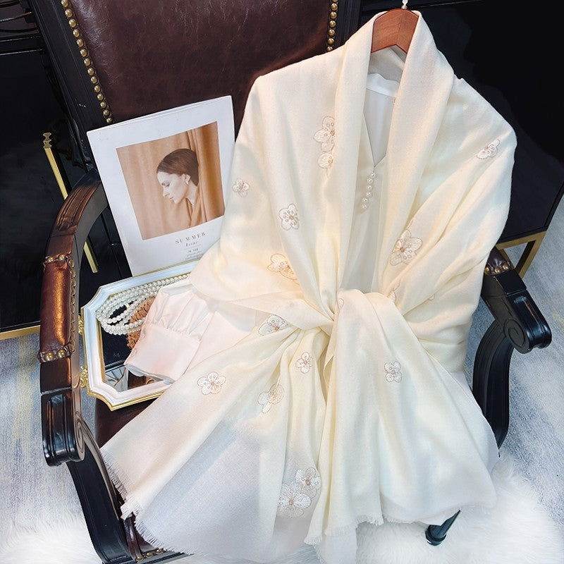 Embroidery 100% Pure Wool Cashmere Scarf for Winter 200×60 cm
