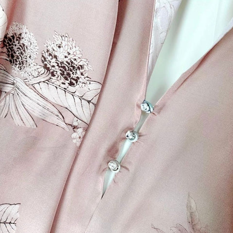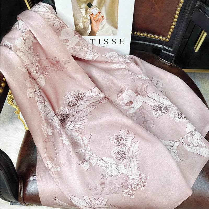 Heavyweight Mulberry Silk】This product is made from 14-momme heavyweight mulberry silk. The texture is smooth and delicate, with a silky and natural drape. The luster is warm and subdued, creating a subtle and elegant touch, and allowing the print to exude vibrancy and sophistication.