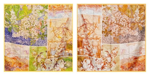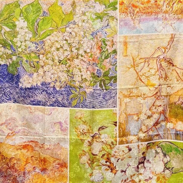 A vibrant canvas of spring, brimming with life. Each scarf is a living masterpiece, vividly portraying the beauty of spring. Elegant and refined, exquisitely beautiful. Showcasing unique artistic charm, allowing you to immerse in the warmth of spring.