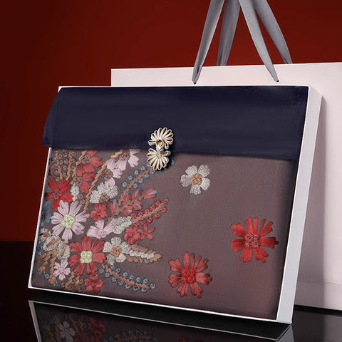 Handcrafted Su Embroidery Cashmere Scarf Luxury Gift Box 200x70cm