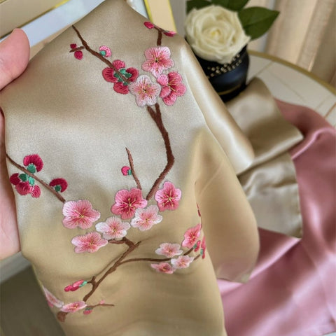 Handmade Suzhou Embroidery 16 Momme Silk Scarf 155x35cm
