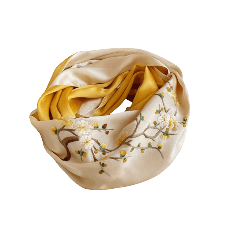 【Hand Embroidery】 Admire the meticulous hand embroidery skillfully adorned on the Silk Scarf, showcasing the impeccable craftsmanship of our artisans.