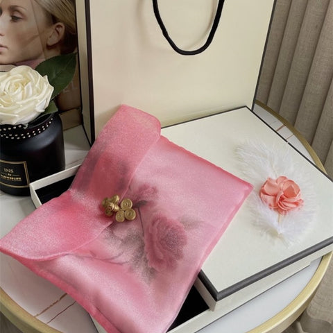 Double Layer – 16 Momme SilkMomme (mm) is a unit of measurement for silk fabric, with higher momme values indicating denser, more luxurious textures and better drape. This particular silk scarf boasts a double layer, featuring 16 momme silk satin on both sides, making it suitable for use as both a scarf and a shawl.